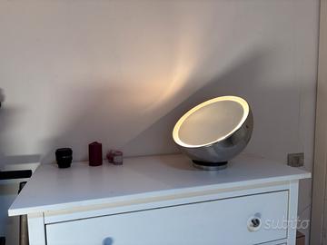 Lampada da tavolo vintage eyeball molto grande anni 60/70/80 Altezza 36/40cm dalla foto non rende. Molto bella effetto ring light ottima per trucco e molto scenica Monta 3 lampadine e14 interne, piccoli graffi sul retro normali vista l’età Valuto proposte