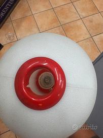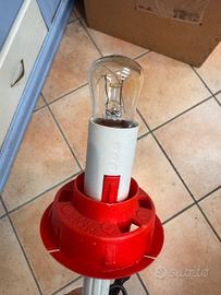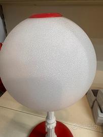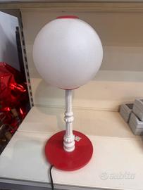 Lampada da tavolo dal design unico, tipico degli anni '70. - Base rotonda rossa. - Stelo bianco decorato. - Sfera in materiale plastico bianco. - Dettagli rossi sulla parte superiore della sfera. -Altezza 41cm
