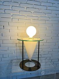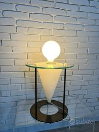Lampada da tavolo degli anni '70 con materiali come vetro e acciaio antracite, riflette l'estetica del design italiano di quel periodo.