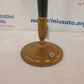Lampada da tavolo Art Deco con base in ottone e ferro smaltato nero. Paralume in
