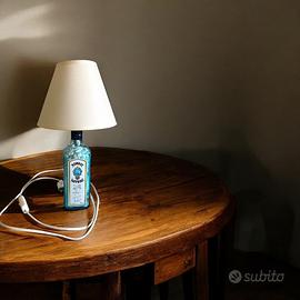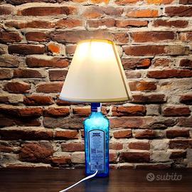 Dai un tocco di originalità e stile al tuo spazio con questa lampada da tavolo unica nel suo genere! Realizzata a mano, la base è una vera bottiglia di Bombay Sapphire, il famoso gin dal caratteristico vetro blu, trasformata con cura in un elegante corpo illuminante. Il paralume bianco classico diffonde una luce calda e accogliente, perfetta per ambienti come salotti, bar domestici, studi o locali dal design ricercato.