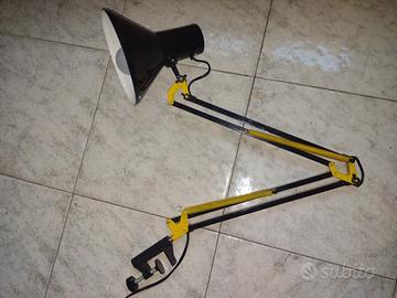 Lampada tecnica da lavoro/studio, a snodo marca Emmedi bicolore in buonissime condizioni estetiche e funzionali. Fornita di morsetto di ancoraggio da tavolo regolabile.