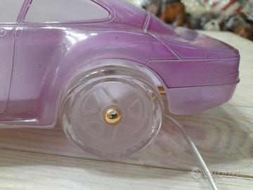 Bellissima lampada da tavolo unica nel suo genere, raffigura un'auto Porsche in vetro viola.