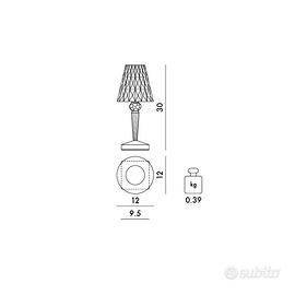 Battery è l'abat-jour dalle dimensioni contenute, la cui grande innovazione è data dal fatto che è 100% ricaricabile tramite una semplice spina elettrica e può vivere in autonomia fino a 8 ore. Questo le consente di essere spostata con grande facilità: ideale dunque per il contract, l utilizzo in caffè o ristoranti all aperto.