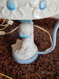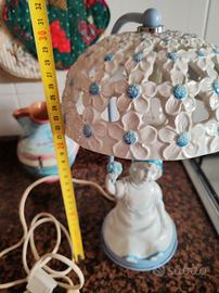 Graziosa lampada da tavolo, bimba piedistallo in ferro, e cappello in ceramica, piccoli punti ossidazione sul retro base