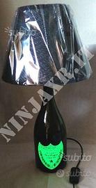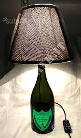 Lampada da tavolo di design creata da una bottiglia di Champagne Dom Perignon Luminous 2003 da 750 ml in modo artigianale, forando il retro della bottiglia ed assemblando l'impianto elettrico.