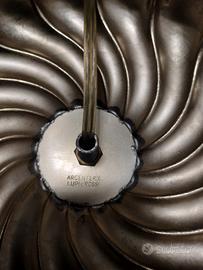 Lampada anni 80/90 con gambo in argento cappelliera in tessuto