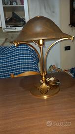 lampada da tavolo in ottone e vetro opalino,anni 80