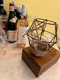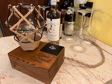 Lampada da tavolo in legno color noce, con interruttore a levetta e incisione laser