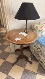 Lampada da tavolo classica con base decorativa in metallo e paralume nero.