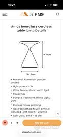 Bellissima lampada LED da tavolo a batteria con design a clessidra di colore bianco.
