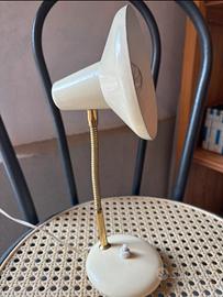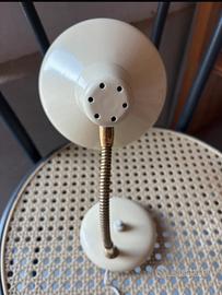 Lampada funzionante da tavolo/ comodino vintage in metallo laccato crema e ottone, Italia 1950.