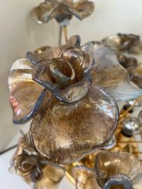 LAMPADA DA TAVOLO CON FIORI IN OTTONE E VETRO DI M