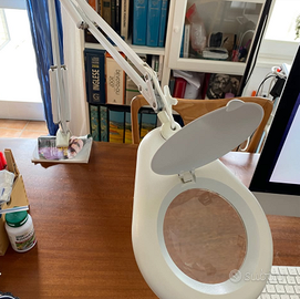 La lampada con lente di ingrandimento e morsetto di Prym ha una lente da 12 cm di diametro per ingrandimento x2, una lampada a luce naturale e un supporto a morsetto che permette di fissarla su tavoli o altre superfici. La lampadina è sostituibile. Ritiro solo a mano, zona Roma o litorale nord.