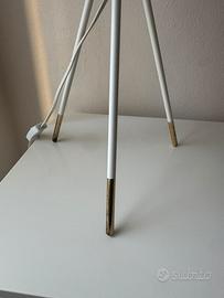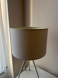 Vendo elegante lampada da tavolo dal design moderno e minimale, perfetta per arredare soggiorno, camera da letto o studio. * Paralume in tessuto color bianco/beige * Struttura a treppiede in metallo bianco con dettagli dorati * Stile contemporaneo, si adatta facilmente a diversi ambienti * Luce calda e soffusa, ideale come lampada da comodino o punto luce decorativo 📏 Dimensioni: alta 50cm, diametro paralume 27cm. 🔌 Attacco standard 📍 Condizioni: buone, come da foto (normali segni d’uso sulle punte delle gambe e un piccolo segno sul paralume) Ritiro a mano zona Milano centro