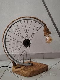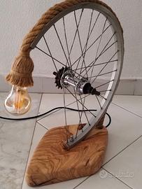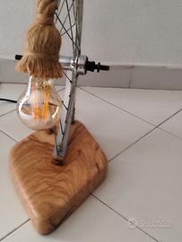 Lampada da tavolo artigianale con base in legno di ulivo