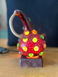 Lampada da tavolo realizzata con zucca essiccata e vetro da un artigiano nizzardo, altezza circa 25 cm, funzionante.