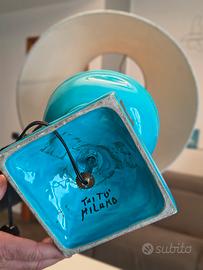 Lampada da tavolo vintage di design in ceramica smaltata di colore turchese vivace. Modernariato italiano. Da vedere, dal vivo è ancora più bella. Funzionante. Marca Taitù Milano. Ha un paio di minuscole scheggiature sulla base quadrata. Paralume in tessuto con tonalità neutra che si può sostituire seguendo i propri gusti x colore, materiale e grandezza. SOLO RITIRO in zona Milano ovest, nessuna spedizione possibile. #designitaliano #modernariato #design