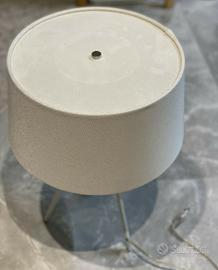 Sofisticata lampada da tavolo di design Tripod con paralume di tessuto ignifugo