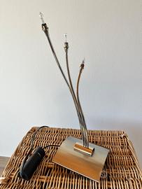 Vendo lampada da tavolo L’Alfa Lampadari con paralumi in vetro satinato e piantana in cromo satinato.