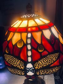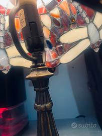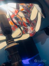 Lampada da tavolo Dragonfly in stile Tiffany vetro colorato base in ottone H 40 Diamatro base 12