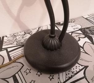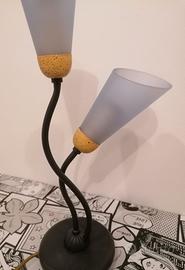 Lampada da tavolo artigianale. Ferro Battuto e Vetro Satinato Blu. Vintage. Made in Italy. Funzionante. 2 lampadine comprese.