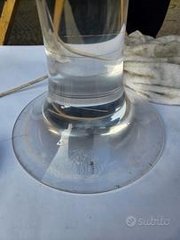 Grande lampada da tavolo in plexiglas (PMMA) massiccio e metallo cromato, attribuita a Harvey Guzzini, produzione italiana anni ’70. Altezza 66cm, Diametro paralume: 40 cm, Diametro base: 32 cm, Impianto elettrico originale con interruttore. Sono presenti alcune micro-crepe interne nel plexiglas della base, dovute all’età del materiale, visibili in controluce ma non strutturali. Visibile e ritirabile a Modena . Vorrei evitare spedizione ma verrà nel caso calcolata in base alla destinazione. Prezzo leggermente trattabile