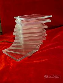 Vendo una lampada da tavolo IKEA mod. B 0323 realizzata in plexiglass trasparente 10 piani mobili con luce a led blu. Funzionante con cavo corrente elettrica e interruttore trasparente. Misura cm.11x11x14 di altezza.