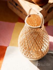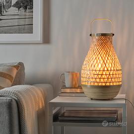 Lampada da tavolo MISTERHULT in bambù IKEA fatta a mano. Nuova comprensiva di lampadina a led. Misure Altezza:36 cm Diametro:22 cm Lunghezza filo elettrico:200 cm Potenza:8.6 W