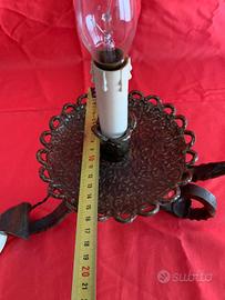 Vendo splendida lampada da tavolo vintage, un vero pezzo d'artigianato in ferro battuto, realizzata completamente a mano. Questa lampada non è solo una fonte di luce, ma anche un elemento d'arredo che aggiungerà un tocco di eleganza rustica e carattere a qualsiasi ambiente.