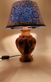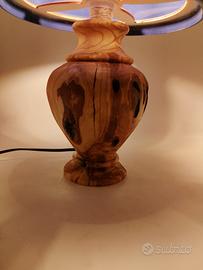 lampada da tavolo in legno dì ulivo, realizzazione artigianale