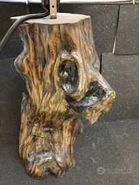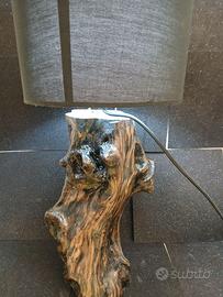 Lampada da tavolo con paralume nero di stoffa e base in vero legno di olivo stuccato e verniciato, pezzo unico e introvabile con certificato di garanzia molto particolare e lampada a LED luce fredda