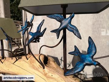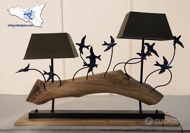 Lampada artigianale per tavolo o scrivania, oggetto che illumina e arreda, grazie al suo stile e lavorazione molto particolare. come si vede in foto è stata realizzata per dare al tuo ambiente un tocco di originalità quasi irripetibile, dato che è stato utilizzato del legno che è cresciuto e formato in modo naturale.