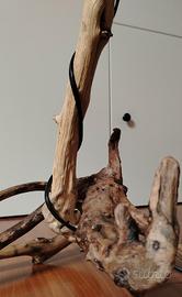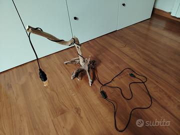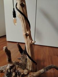 Lampada da tavolo realizzata in legno naturale levigato dal mare. Forme particolari, striature create dal mare... pezzo unico. Lampadina non inclusa.