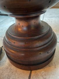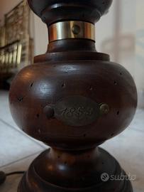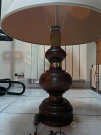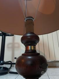 Vendo elegante lampada da tavolo anni ’70-’80 in legno massello tornito, stile classico/rustico, con dettagli decorativi in metallo.