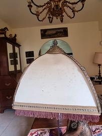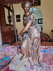 Lampada da tavolo con statua di donna, in lega Ormolu, primo Novecento, altezza totale 86 cm (compreso cappello), buono stato di conservazione (1 braccio saldato, lieve ammaccatura su un ginocchio).