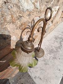 La struttura è realizzata in ottone, mentre il paralume è in vetro lavorato.