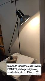 Svendo Lampada industriale da tavolo EMMEDI, vintage originale mod 122, max 75 W, con lampadina ad incandescenza da 40 W posizionata su piastrella di marmo come basamento prezzo lievemente trattabile per velocizzare la vendita