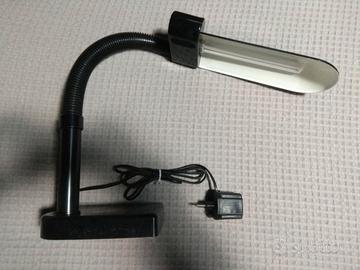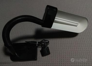 Lampada da tavolo italiana vintage Sylvania '80, in plastica rigida nera con braccio flessibile e interruttore rosso integrato nel paralume.