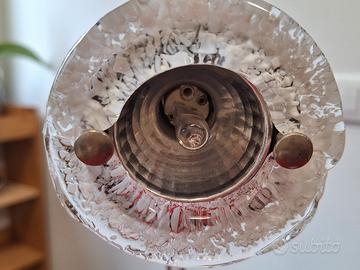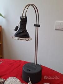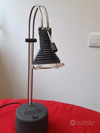 Elegante lampada fnzionante, regolabile da tavolo, firmata la Murrina con particolare in vetro Murano bianco, struttura solida di materiale acciaio inox e plastica marchiato su base.