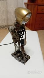 Vendo lampada da tavolo artigianale artistica... rappresentante papà che accompagna bambino... altezza circa cm. 32 per un ingombro di circa cm. 12x12...