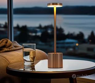 Lampada da Tavolo Senza Fili LED, 5000mAh Ricaricabile USB, Luce a Batteria Dimmerabile, 3 Modalità di Colore, per Scrivania Esterno Tavola Ristorante Comodino, Alluminio. Tre colori disponibili: bianco, nero e oro.