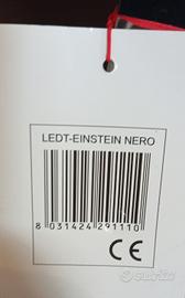 Lampada da tavolo Ledt-Einstein nera,in plastica rigida con base trasparente,2 tipi di illuminazione,luce bianca x lettura o luce blu alla base. Misure: altezza 45cm base 22 cm