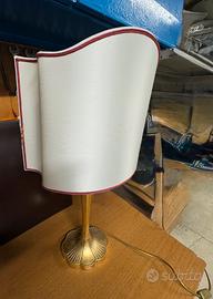 Vendo lampada ditta LUCECREA ad una luce in pressofusione di metallo rifinito a foglia oro a mano. Usata ma perfettamente funzionante e in perfetto stato. Calotta in tela in ottime condizioni. Completa di cavo e pulsante x accensione/spegnimento. Misure: altezza totale cm. 60 - base cm. 17x13 - larghezza massima cm. 30. Preferibile ritiro o consegna diretta. Eventuali spese di spedizione a carico dell’acquirente. No perditempo.