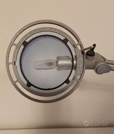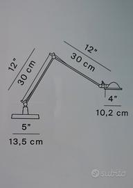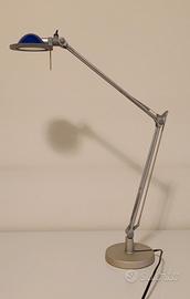 Lampada da tavolo "Luceplan - Berenice" snodabile ed orientabile, in alluminio, calotta riflettente in vetro blu, bassa tensione 12 V, bracci cm 30 + 30. A Parma Cell. 338.3315260