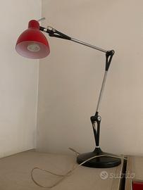 Luxy è una lampada “classica”, concepita come l’evoluzione degli apparecchi tecnici a bracci snodati. L’impiego di un diffusore in vetro trattato con vernici colorate permette di ottenere un’emissione di luce diretta e diffusa, con tonalità cromatiche calde ed eleganti. Base nera e argento, diffusore colore rosso