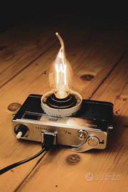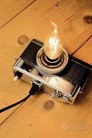 Lampada da tavolo ricavata da macchina fotografica analogica vintage Minolta 35mm. Attacco E14 e interruttore sul corpo macchina. Lampadina non inclusa Per qualsiasi informazione e ulteriori richieste resto a disposizione