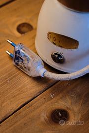 Lampada da tavolo artigianale ricavata da un macinacaffè anni 50/60 Lampada in pieno stile vintage! Attacco G9 e cavo in tessuto intrecciato. Viene fornita una lampadina LED, una volta esaurita, è consigliato usare nuovamente una lampadina LED. Per qualsiasi richiesta o informazione resto a disposizione