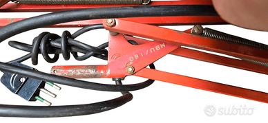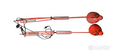 lampade da tavolo o da scrivania articolate di colore rosso, con un design che ricorda l'iconica lampada "Tolomeo" ( con morsetti mancanti )