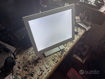 Lampada ricavata da un monitor 15" LG, con la scocca interamente smaltata di bianco.